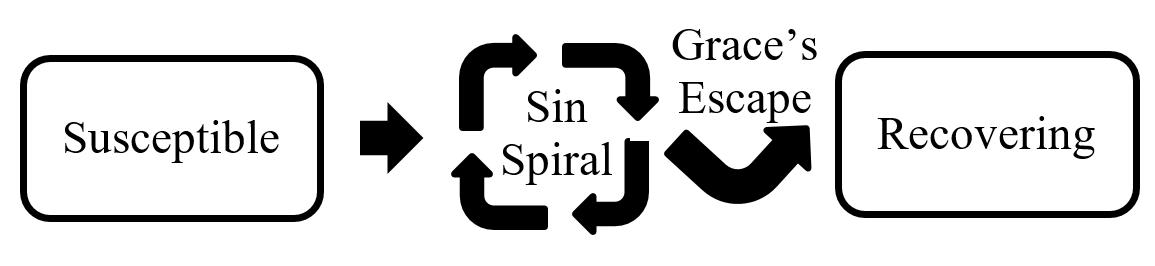 While it doesn’t fully explain sin, this diagram does describe something about how God’s grace works. Those who have found salvation in a big, watershed moment were stuck in a spiral of sin until God’s grace broke in and led them to a better way of being. (“Recovering” indicates that one is better but not perfect. We’re saved from the sin spiral, but are always working on remaining in right relationship.)