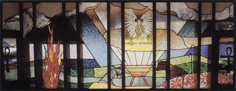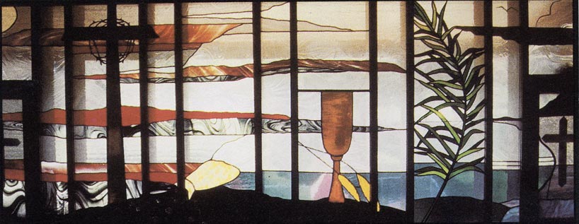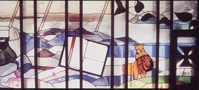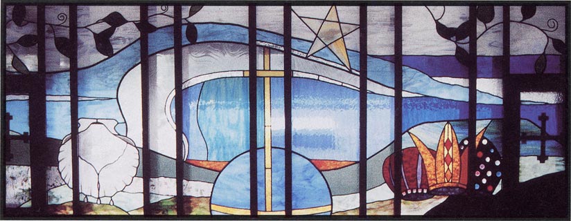 The committee began its work by visiting many area churches to look at stained glass windows and to evaluate different styles, colors, and themes. The goal of the committee was to install beautiful, colorful windows that would enhance the sense of spirituality in our sanctuary, but at the same time fit in with the contemporary architecture of the church. In 1995 Judy Jennings, a stained glass artist from Winnipeg, Canada, was invited to create the design.